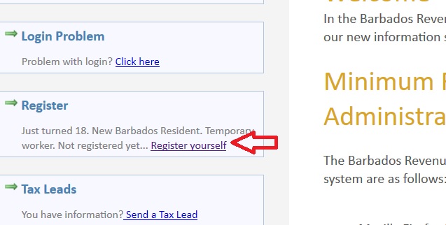 Just turned 18. New Barbados Resident. Temporary worker. Not registered yet.. Just register yourself by clicking register link.