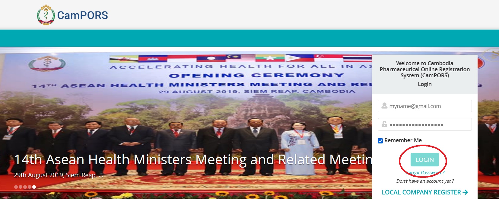 To Login To Cambodia Pharmaceutical Online Registration System (CamPORS), Follow the below steps