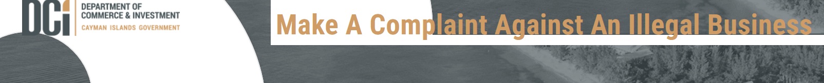 Should members of the Public wish to submit a complaint or notify the Department of Commerce & Investment regarding any illegal business operations or activities, relevant details can be emailed to info@dci.gov.ky or enforcement@dci.gov.ky