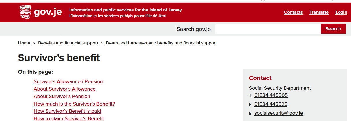 Website : http://www.gov.je/Benefits/DeathBereavement/Pages/WidowWidowerBenefit.aspx