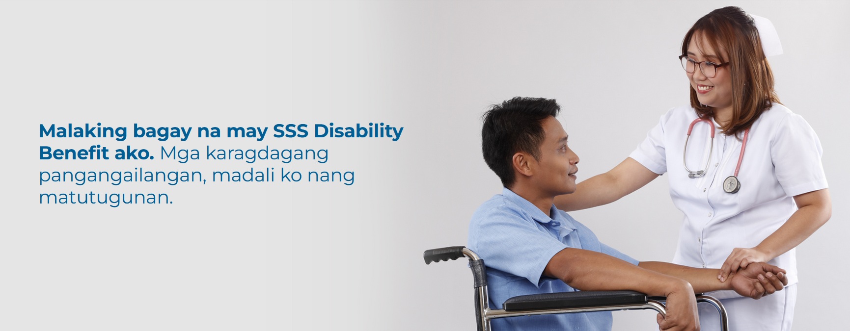SSS adopts the World Health Organization’s (WHO) definition of disability as ”any restriction or lack (resulting from impairment) of ability to perform an activity in the manner or within the range considered normal for a human being”. Disability Benefit is a cash benefit granted either as a monthly pension or lump sum amount to a member who becomes permanently disabled, either totally or partially.