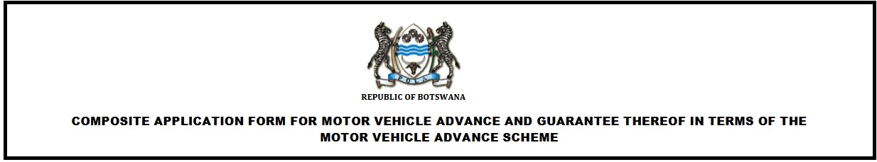The service issues Motor Vehicle Advances (MVA) to permanent & pensionable and contract citizen and non citizen public officers, Members of the National Assembly and Ntlo ya Dikgosi. Download and complete Motor Vehicle Bank Application Form and submit with supporting documents.