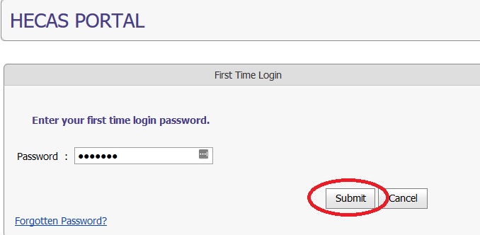 E.g. “Your password is 5si7ly (6-digit alpha-numeric). Please use this password to logon to HECAS