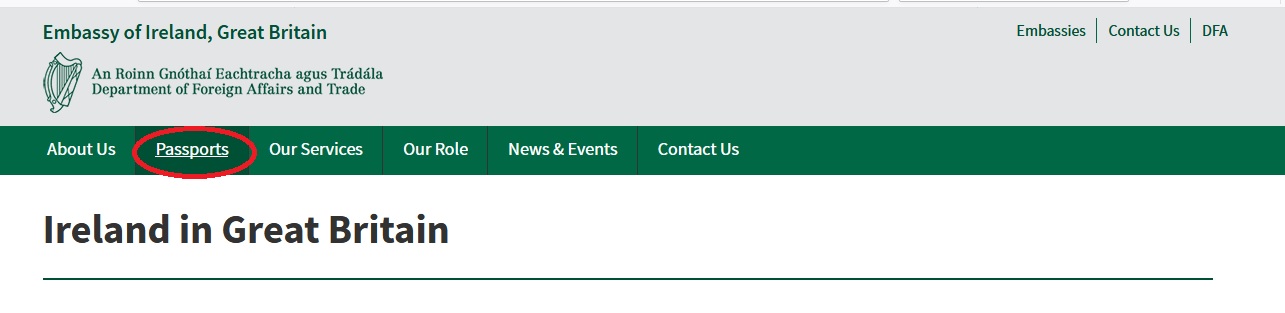 DFA Irish Passport Application : Embassy of Ireland Great Britain