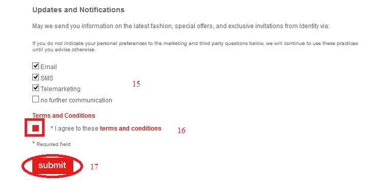 Step 15 : If you do not indicate your personal preferences to the marketing and third party questions below, we will continue to use these practices until you advise otherwise.