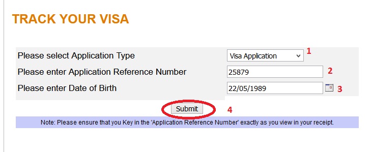 Please ensure that you Key in the ‘Application Reference Number’ exactly as you view in your receipt.