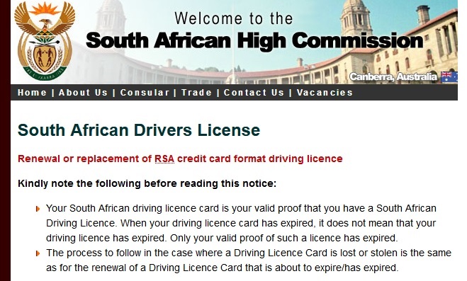 Applicants outside the borders of the RSA who’s Driving Licence Cards have expired or were lost / stolen and who are not in a position to return to the RSA to have the licence renewed:
