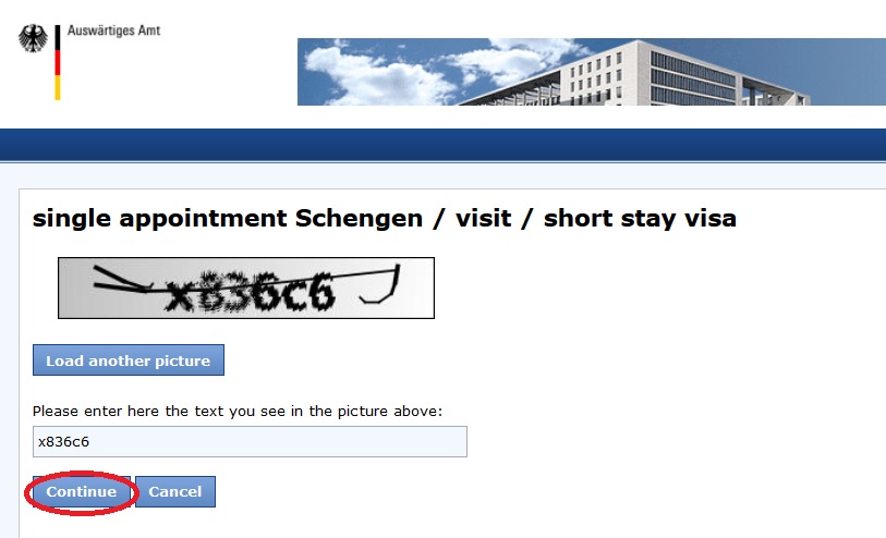 Admission to the visa section of the German Embassy in order to submit an application is only possible on presentation of a printout of a valid appointment booking confirmation and a complete application.