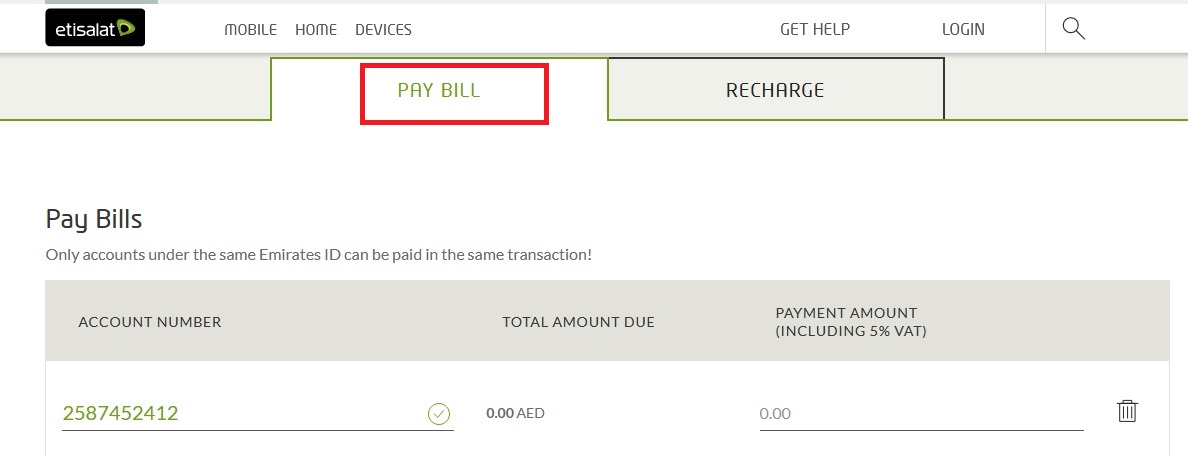 View & Pay Your Bills Abu Dhabi UAE : Etisalat