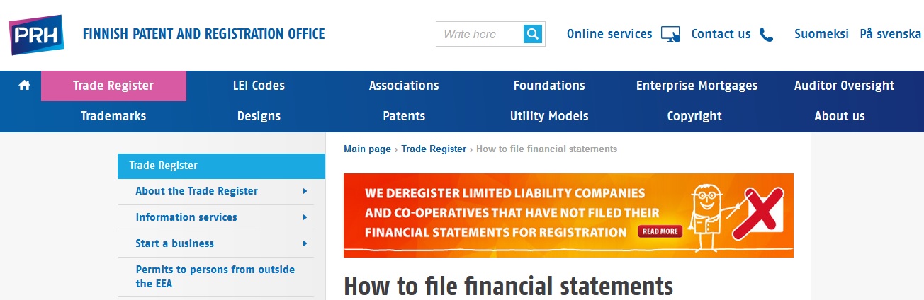 Financial Statements Filing Finland : Finnish Patent & Registration Office PRH
