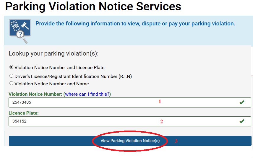 ** Enter your Parking Ticket Infraction number (Top right of the ticket)
