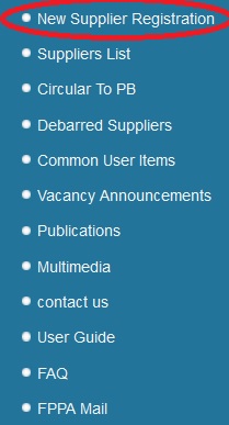 ** Go to the official website of FDRE Public Procurement & Property Administration Agency and Click New Supplier Registration link in the left side of the page.