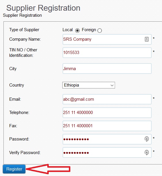 Register Online : http://www.ppa.gov.et/index.php?option=com_ppaextuser&view=register&regtype=Supplier