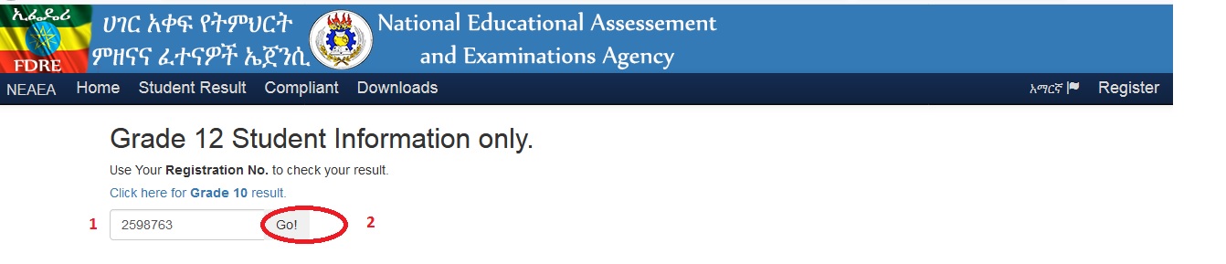 Just follow the below steps to check NEAEA Grade 12 exam result online. Your grade 12 result can be obtained using your register number. Go to the official website of NEAEA provided above.