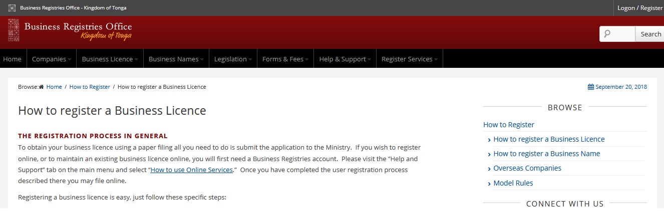 Website : http://www.businessregistries.gov.to/how-to-register-a-company/how-to-register-a-business-licence/
