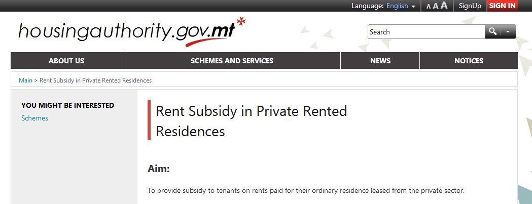 housingauthority.gov.mt Rent Subsidy in Private Rented Residences Malta : Housing Authority