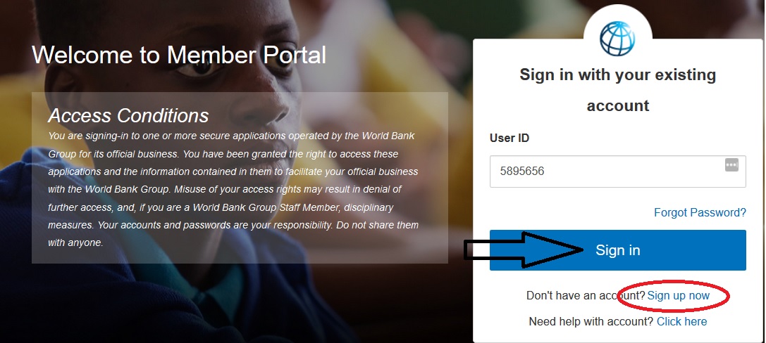You are signing-in to one or more secure applications operated by the World Bank Group for its official business.
