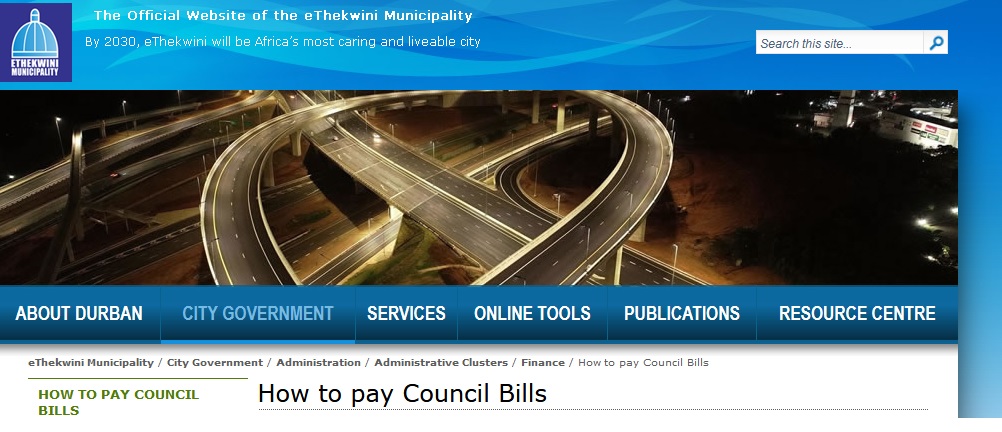 Facilities to pay our bills are available at the municipal offices at Kingsburgh, Westville, Hillcrest, Verulam, Tongaat, Shallcross, and certain zonal offices at Inanda Newtown, Ntuzuma, KwaMashu and Umlazi. These facilities remain “off-line” however, and are most suitable for the payment of current bills only.