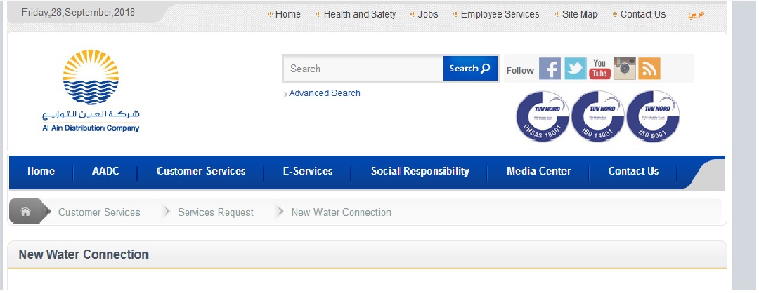 aadc.ae New Water Connection United Arab Emirates : Al Ain Distribution Company