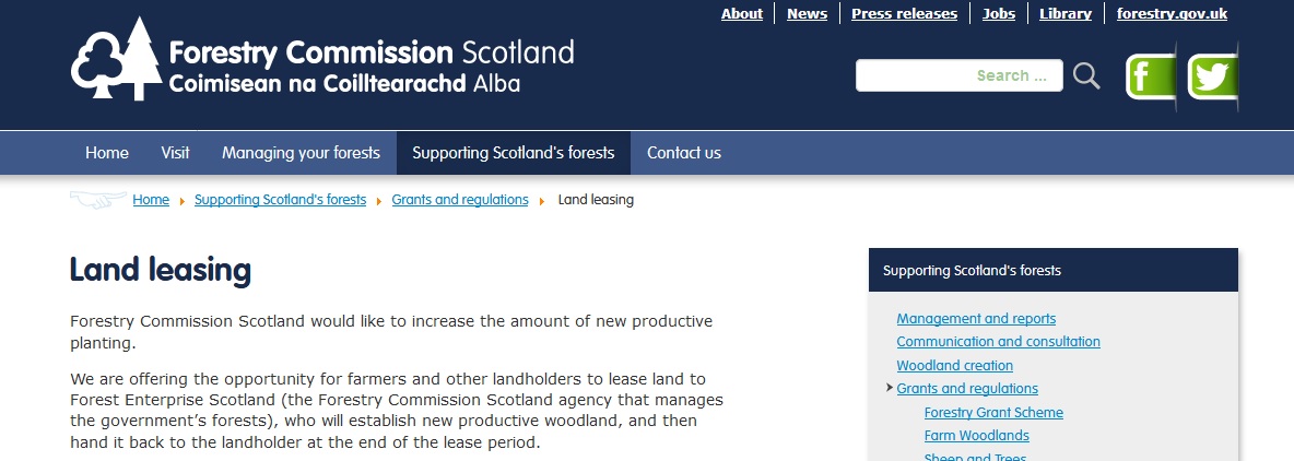 We are offering the opportunity for farmers and other landholders to lease land to Forest Enterprise Scotland (the Forestry Commission Scotland agency that manages the government’s forests), who will establish new productive woodland, and then hand it back to the landholder at the end of the lease period.
