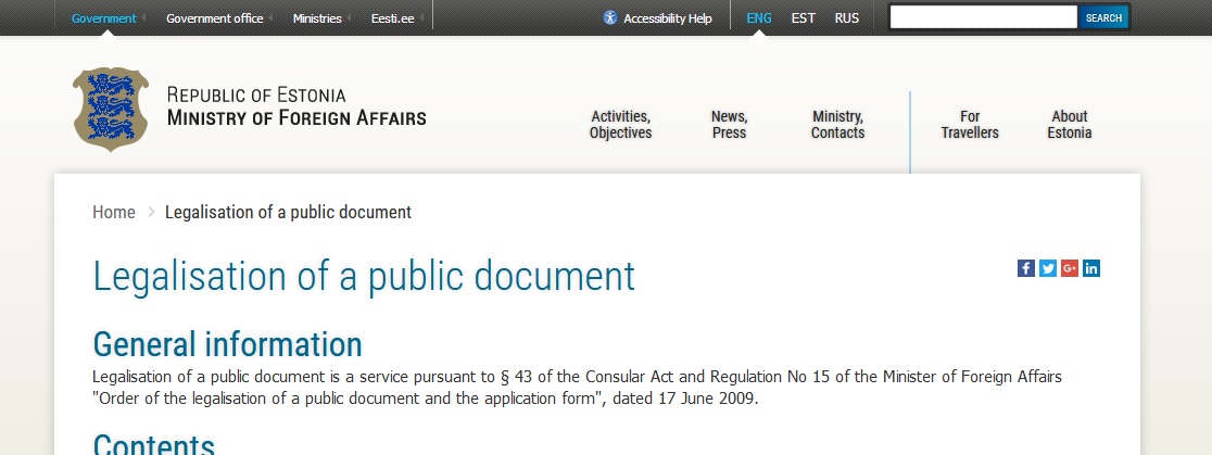 vm.ee Legalisation of Public Document Estonia : Ministry of Foreign Affairs