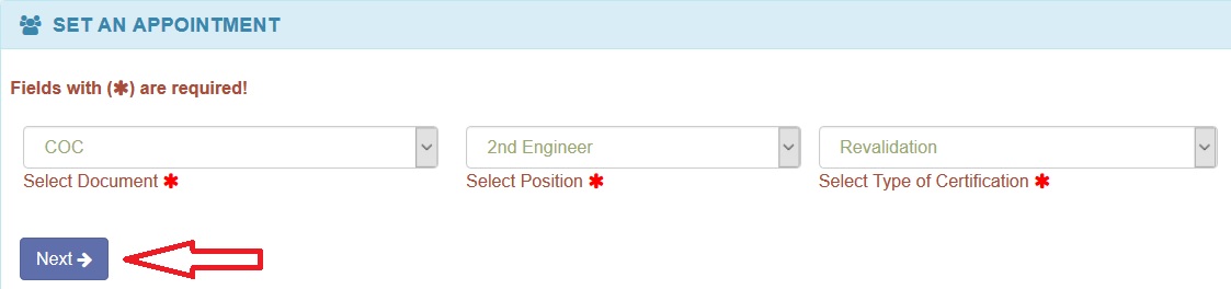 Step 1 : Go to the official website of Maritime Industry Authority through the URL provided above and Click ‘Set An Appointment’ button in the bottom of the page.