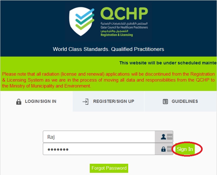Login Here : https://reg.qchp.org.qa/en/_layouts/LogIn.aspx?ReturnUrl=/en/_layouts/Authenticate.aspx?Source=/en/Pages/default.aspx