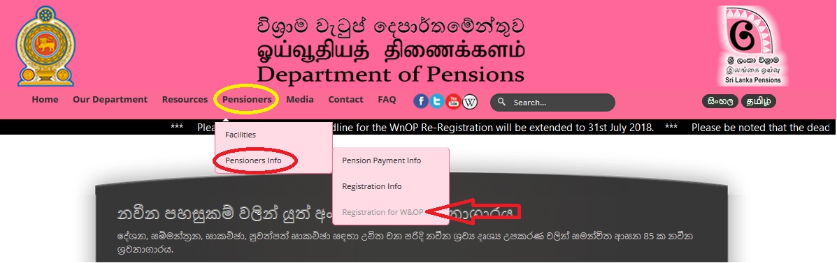 pensions.gov.lk : Widows, Widowers & Orphans Pension Registration System Sri Lanka