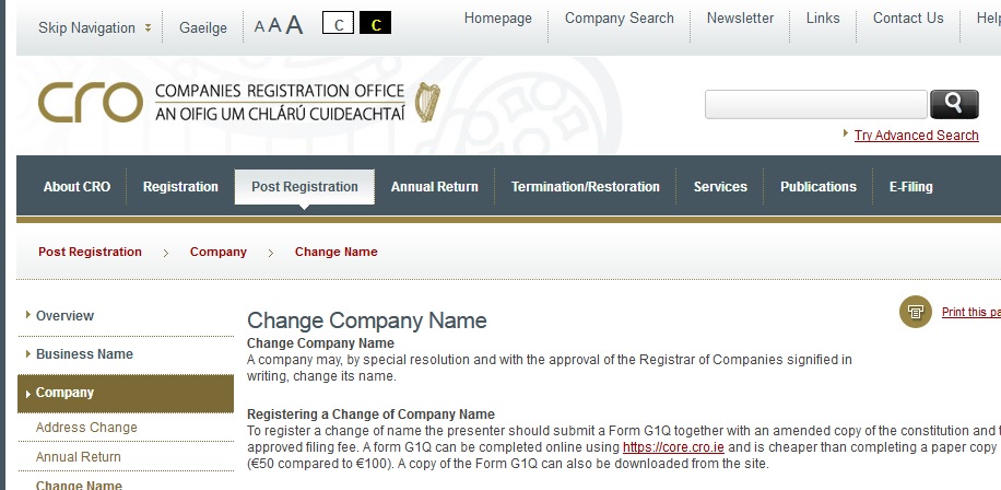 cro.ie Registering a Change of Company Name Ireland : Companies Registration Office