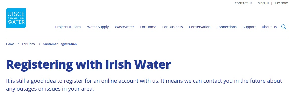 Website : http://www.water.ie/customer-registration/how-to-register/